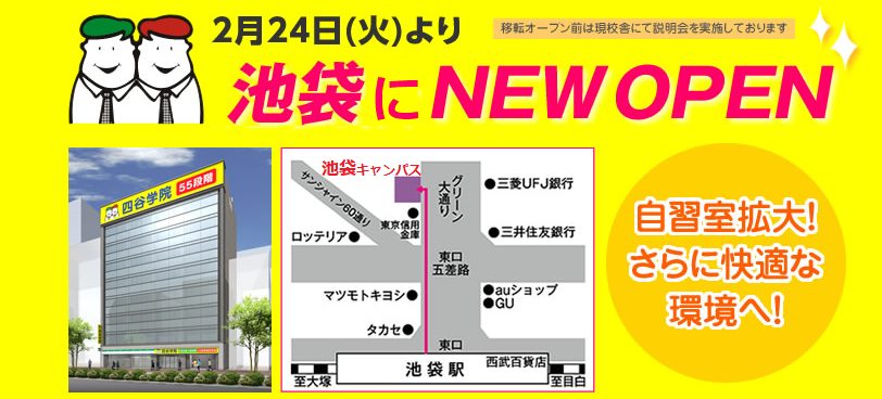 四谷学院高等学校「池袋キャンパス」2026年2月24日NewOpen!更新日:2026年2月12日公開日:2026年2月10日ニュース一覧 こんにちは、四谷学院高校、池袋キャンパスからのお知らせです。 2026年2月24日より、移転オープンします! これまでと同じく駅からすぐの建物です。自習室などさらに快適になりますよ。 ピカピカの校舎で一緒にがんばりましょ […] 続きを読む