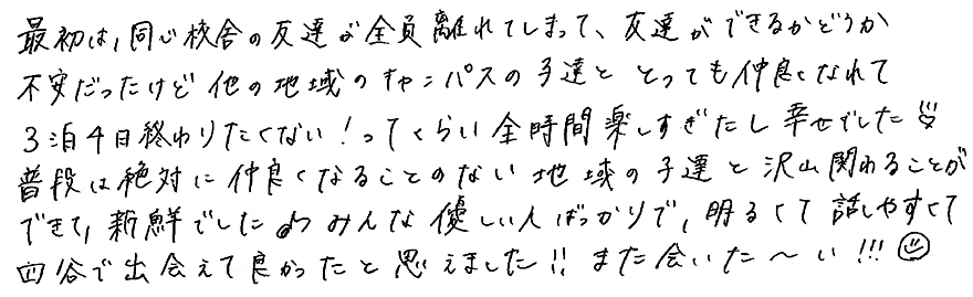 2年次は指定キャンパスでのスクーリング以外に3泊4日で本校に行きます。自然豊かな環境の中、普段はできない体験を仲間と一緒に楽しみます。